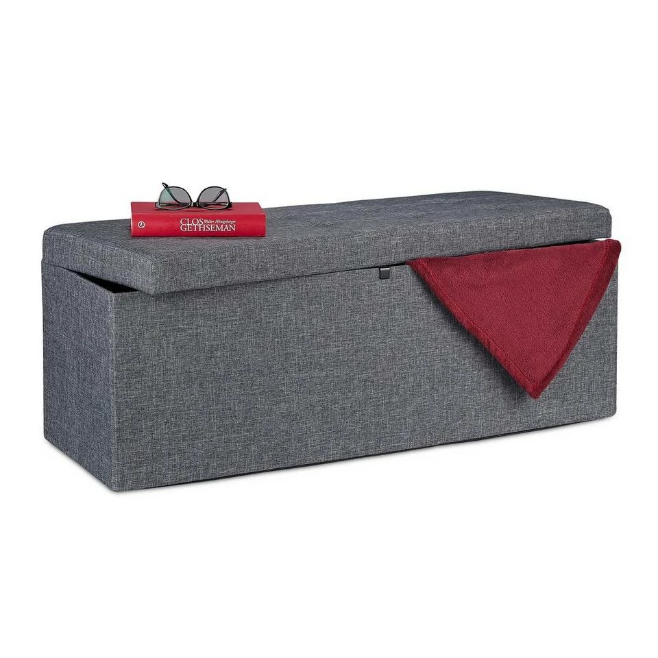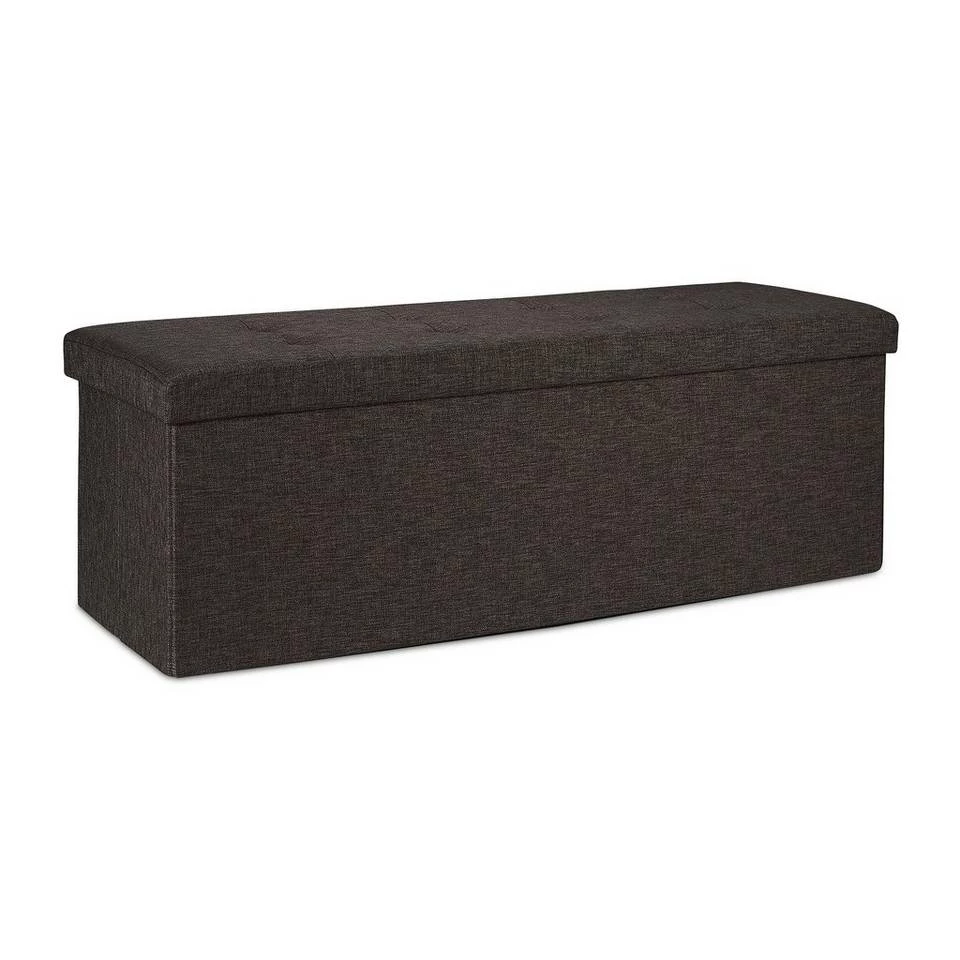 Faltsitzbank für Wohn-, Schlafzimmer & Flur Die Sitzbank ist ein echtes Stauraum-Talent und passt mit dem schlichten, melierten Design in jedem Wohnraum. Bewahren Sie Decken, Kissen, Bücher, Bettwäsche und mehr raffiniert blickgeschützt auf. Bei geschlossenem Deckel wird die Aufbewahrungsbox zur praktischen Sitzbank. Mit dem einsetzbaren Trenngitter bekommen Sie 2 Innenfächer und sortieren den Inhalt der Truhenbank noch übersichtlicher. Auf der äußerst stabilen und breiten Garderobenbank können bis zu 3 Personen bequem Platz nehmen.