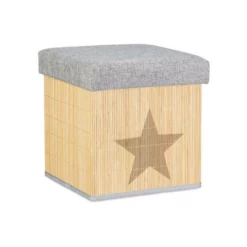 Faltbarer Sitzhocker im Bambus Look Der große Stauraum des faltbaren Sitzhockers lässt sich mit vielen verschiedenen Gegenständen wie Büchern, Decken oder CDs befüllen. Der Hocker überzeugt durch eine ausgefallene Bambus-Optik mit Stern-Aufdruck und sorgt für ein natürliches Flair. Der Polsterhocker mit 2in1 Funktion kann als Aufbewahrungsbox und als Sitzgelegenheit genutzt werden. Besteht einmal Platzbedarf, dann ist der Sitzwürfel mit wenigen Handgriffe zusammengefaltet und weggeräumt. Der Bezug aus widerstandsfähige Stoff ist einfach zu reinigen und zu pflegen.