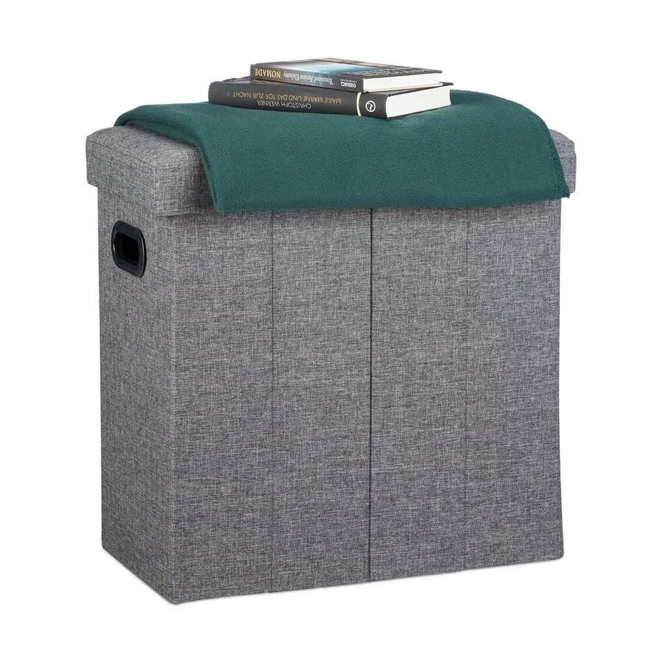 Falthocker in Leinen-Optik Dieser Falthocker ist nicht nur eine bequeme Sitzgelegenheit, sondern verbirgt in seinem Inneren einiges an zusätzlichem Stauraum. Rund 50 l Fassungsvermögen stehen Ihnen zur Verfügung, wenn Sie Spielzeuge, Zeitschriften, Schuhe oder andere Dinge platzsparend verstauen möchten. Die Aufbewahrungsbox im rustikalen Leinen-Look fügt sich bestens in viele Einrichtungen ein. Ob Flur, Bad, Wohn- und Kinderzimmer: Der belastbare Sitzhocker macht überall eine gute Figur. Sollte die Sitztruhe ihren Dienst erfüllt haben, falten Sie sie einfach wieder zusammen. Zusammengefaltet verbraucht die rund 3 kg schwere Faltbank kaum Raum, sodass sie auch als Begleiter für unterwegs praktisch ist.