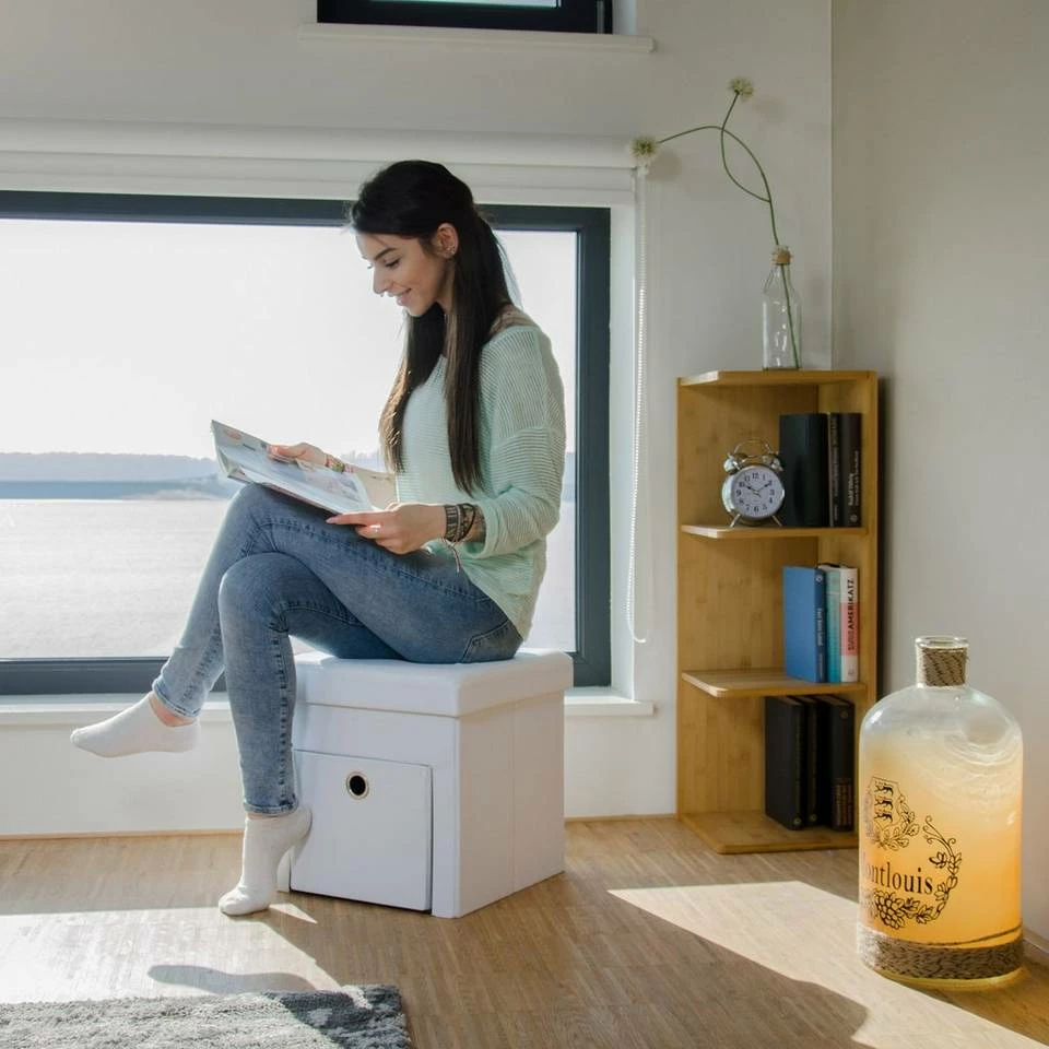 Faltbarer Sitzhocker mit Fach Alle möglichen Gegenstände wie Zeitschriften, CDs oder Decken können im Stauraum des Sitzhockers Platz finden. Das herausziehbare Fach des Sitzhockers hat den Vorteil den Stauraum vollkommen im Griff zu haben. Sortieren Sie Ihre kleinen Gegenstände des Haushalts besser und behalten Sie den Überblick. Das widerstandsfähige natürliche Material des Sitzwürfels fühlt sich beim Sitzen angenehm an. Zudem fügt es sich problemlos in Ihr Wohnambiente ein. Einfach eine passende Farbe aussuchen und den faltbaren Sitzhocker nach Hause holen.
