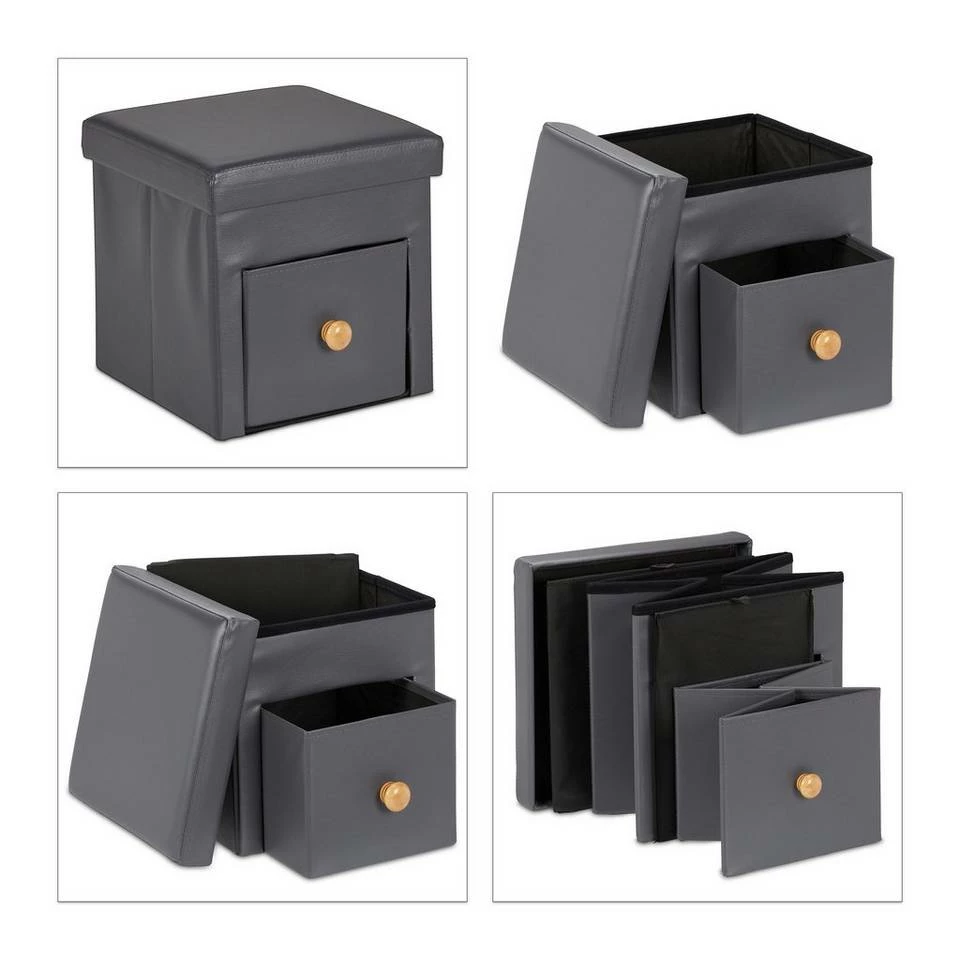 - Design: Dekorativer Stauraumhocker mit grauem Bezug in Lederoptik – Passt zu modernen Einrichtungen