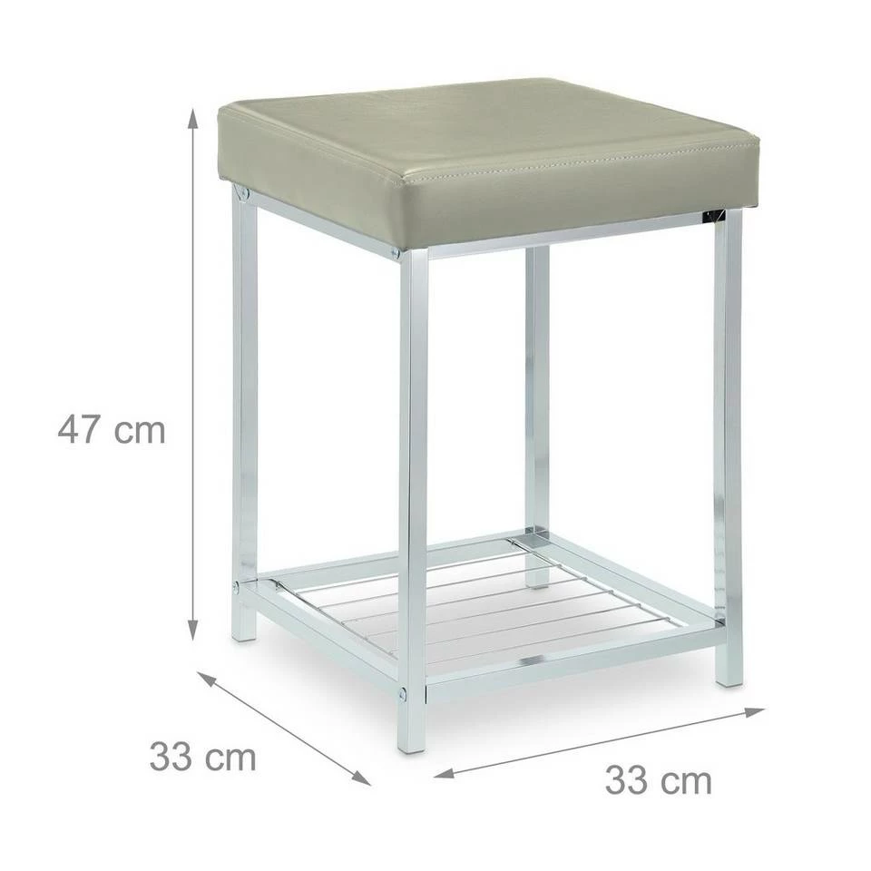- Details: Platzsparender Dielenhocker aus Stahl, PVC und PP – Maße H x B x T: ca. 47 x 33 x 33 cm
