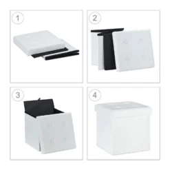 Eckiger Kunstlederhocker mit Stauraum Der praktische Hocker kann sowohl als Sitzgelegenheit sowie zur Aufbewahrung genutzt werden. Im Inneren ist genügend Platz für die Kuscheldecke, Zeitschriften & Spielzeug. Die Polsterung des Sitzwürfels sorgt für ein angenehmes Sitzgefühl, ist aber auch als Ablage für die Füße nach einem harten Arbeitstag die richtige Wahl. Der belastbare Sitzhocker überzeugt mit seiner edlen Lederoptik, die sich gut in moderne Einrichtungen einfügt. Der Hocker lässt sich bei Verschmutzungen einfach abwischen.