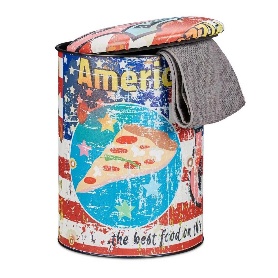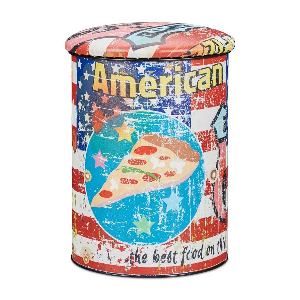 - Mit Motiv: Runder Sitzhocker mit schickem Pizza-Motiv – Route 66-Schild – Charakteristische Stars and Stripes Optik im Vintage Stil