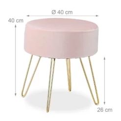 Edler Samtsitzhocker mit goldenen Metallbeinen Mit diesem kleinen Polsterhocker zieht ein Hauch Eleganz & Glamour in Ihre vier Wände. Der Samthocker in zartem Rosa verzaubert in jedem Interieur & setzt mit seinen angesagten Hairpin-Legs stylische Akzente. Wie der Hocker in Ihrer Wohnung zum Einsatz kommen soll, ist dabei vollkommen Ihnen überlassen. Egal, ob Sie ihn als Sitzhocker vor dem Schminktisch, als Fußablage oder als Beistellhocker neben dem Sofa zum Ablegen von Zeitschriften verwenden – der Dekohocker zieht die Blicke auf sich.