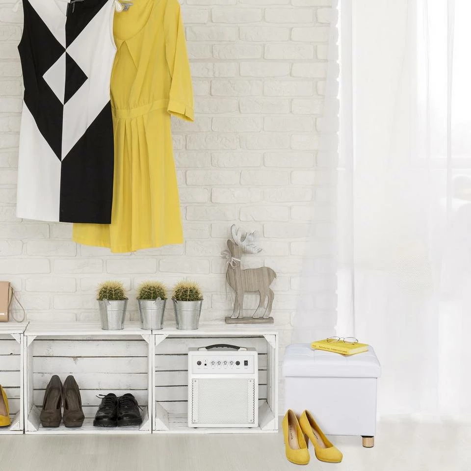- Weißer Sitzhocker: Schlicht-funktionales Design des Hockers fügt sich dekorativ in jede Einrichtung