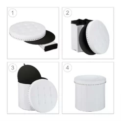 Faltbarer Sitzhocker mit Stauraum Dieser praktische Stepphocker vereint eine bequeme Sitzgelegenheit mit einer nützlichen Aufbewahrungsmöglichkeit. Die gesteppte Sitzfläche ist weich gepolstert und sorgt dafür, dass man auf dem Rundhocker gerne Platz nimmt. Im Inneren verbirgt sich jede Menge Stauraum für Zeitschriften, Decken, Kissen oder Spielzeug. Wird der Hocker einmal nicht benötigt, lässt er sich einfach zusammenfalten und im Nu platzsparend verstauen. Wählen Sie aus den verschiedenen Farben Ihre liebste aus!