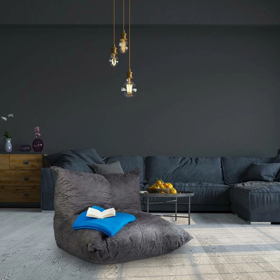 Gaming Sitzsack XXL zum Entspannen Das große Bodenkissen bietet genügend Platz, um herrlich herumzulümmeln. Der XXL Sitzsack verfügt über eine Lehne und ist somit der ideale Begleiter beim Lesen oder Zocken am Boden. Der dunkelgraue Polyester ist in Velourleder-Optik gehalten und ein echter Hingucker. Ob für Kinder zum Toben oder Besuch – Der Sesselsack ist eine bequeme Sitzmöglichkeit für Groß und Klein. Lassen Sie Ihre Seele baumeln, während Sie sich zurücklehnen und den Sitzkomfort genießen. Der Sitzsack ist durch sein Eigengewicht außerordentlich Standfest.