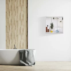 - Design: Moderner Stil aus weißem Stahl – Der Spiegelschrank fügt sich in jedes Badezimmer ein