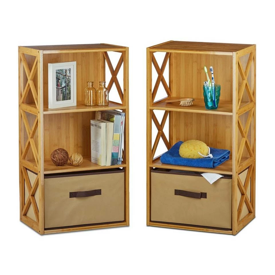 - 2 x Regal Bambus im Set: 3 Etagen als praktische Ablagefläche mit Rückwand und Fallschutz an den Seiten – Maße je Fach H x B x T: ca. 25 x 39 x 28 cm