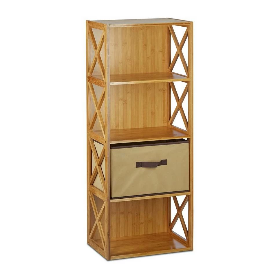 Regal Bambus mit Faltbox Das Bambusregal wird zur hübschen Ablage in Ihrer Wohnung. Besonders in Räumen mit wenig Platz schafft es ordentlich sortierten Stauraum. Die faltbare Box ist dabei besonders für kleinteilige und lose Sachen geeignet. Nehmen Sie Wolle, Zeitschriften, Elektronik uvm. elegant aus dem Blickfeld. Der Einlegeboden sorgt hier für maximale Stabilität. Stellen Sie sich das Regal in den Flur, Eingangsbereich oder die Stube. Dank des widerstandsfähigen Bambus ist es ideal als Badregal geeignet.