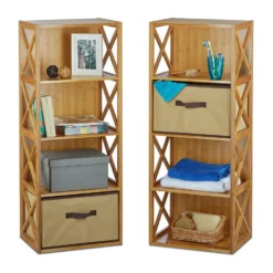 - 2 x Regal Bambus im Set: 4 Etagen als praktische Ablagefläche mit Rückwand und Fallschutz an den Seiten – Maße je Fach H x B x T: ca. 25 x 39 x 28 cm