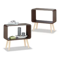 - 2er Set Nachttische: Das Set enthält 2 niedrige Standregale mit Holzbeinen – Maße H x B x T: ca. 50 x 53 x 20 cm – Ideal als offener Nachttisch und Beistelltisch