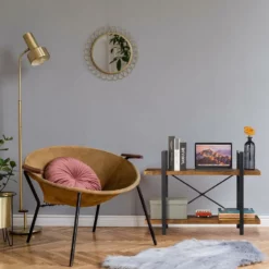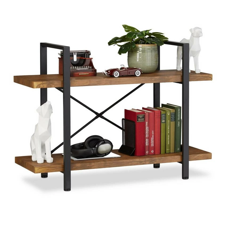 - Design: Büroregal mit schwarzem Metallgestell und Ablagen in brauner Holzoptik für rustikales Flair