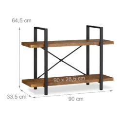 Dekoratives Standregal mit 2 Fächern Dieses moderne Vintage Regal schafft Stauraum in Ihrem Wohn-, Schlaf- oder Arbeitsbereich. Die 2 belastbaren Ebenen in dunkelbrauner Holzoptik sind ideal, um Ordner, Bücher, Zeitschriften und vieles mehr übersichtlich aufzubewahren. Doch auch Pflanzen, Dekoartikel oder Bilder lassen sich mit dem niedrigen Flurregal im Industrial Design gekonnt in Szene setzen. Das stabile Metallregal lässt sich dank verstellbarer Bodenschoner optimal ausrichten, sodass es sicher & ohne zu Kippeln steht. Tipp: Ziehen Sie die Schrauben des Gestells zunächst nur leicht an. Sind die Regalböden angeschraubt, können auch alle anderen Schrauben festgezogen werden. Somit geht der Aufbau des Regals leicht von der Hand und es steht stabil.