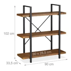 - Stabil: Buchregal aus Metall und MDF HBT: ca. 102 x 90 x 33,5 cm – Je Fach bis max. 30 kg belastbar
