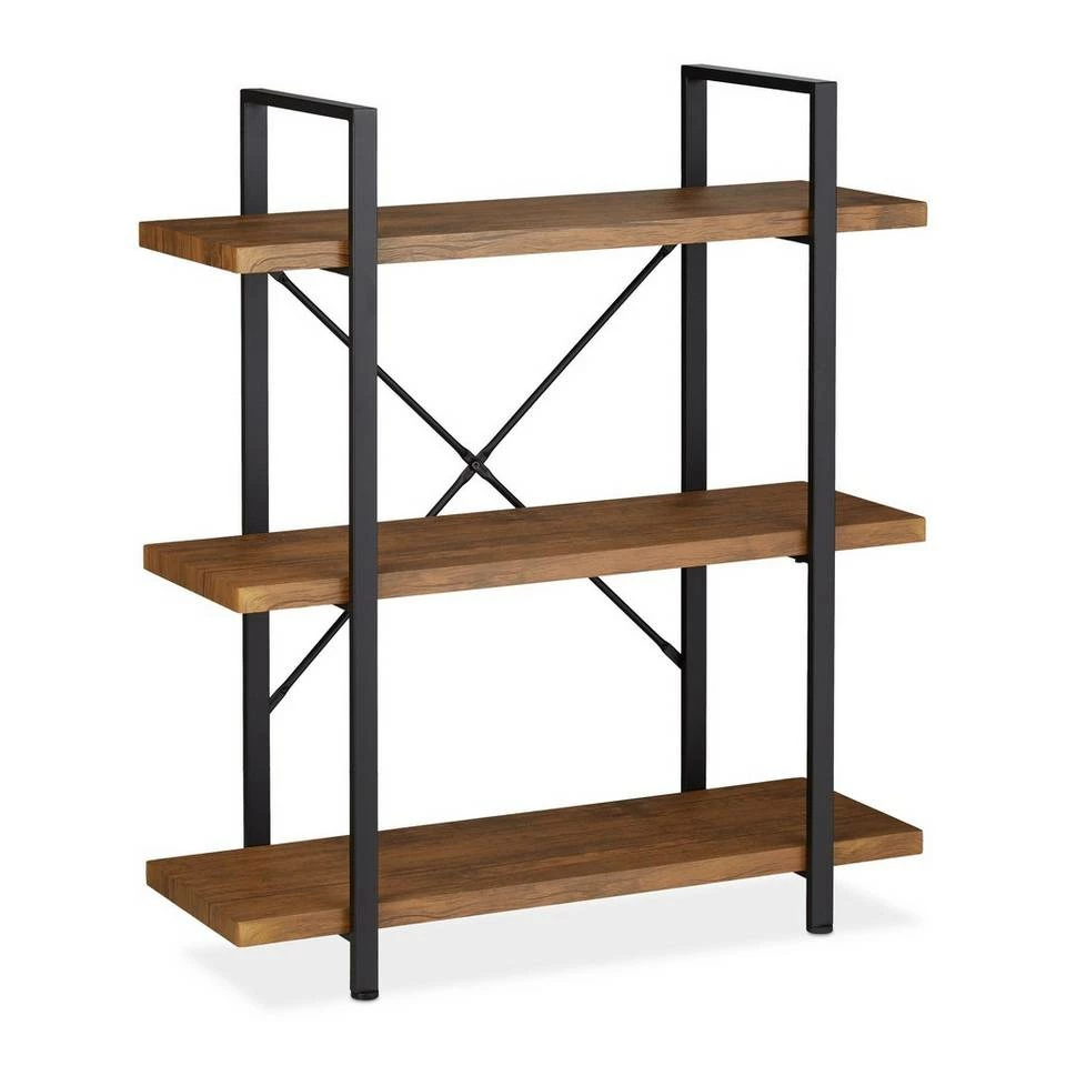 Rustikales Dekoregal für den Wohnbereich Holen Sie sich mit diesem Standregal rustikalen Charme in Ihre 4 Wände. Mit der ansprechenden Kombi aus Ablagen in dunkler Holzoptik und einem schwarzen Metallgestell sorgen Sie für ein Highlight im Wohn-, Schlafzimmer oder Flur. Dank der 3 offenen Fächern des Buchregals können Sie Pflanzen, Deko, Bilder & mehr gekonnt in Szene setzen. Doch auch als Büroregal für Ordner oder Bücher kann das Regal überzeugen. Mit den verstellbaren Füßen haben Sie dabei kein Problem mit lästigem Kippeln. Tipp: Ziehen Sie die Schrauben des Gestells zunächst nur leicht an. Sind die Regalböden angeschraubt, können auch alle anderen Schrauben festgezogen werden. Somit geht der Aufbau des Regals leicht von der Hand und es steht stabil.