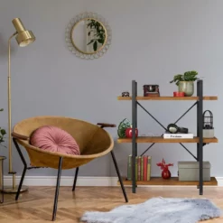 - Design: Büroregal mit schwarzem Metallgestell und Ablagen in brauner Holzoptik für rustikales Flair