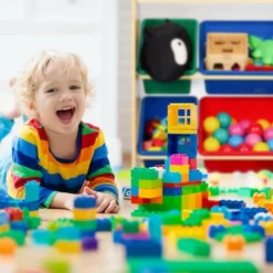 - Für Spielsachen: In den Boxen des Kinderschranks Spielsachen wie Puzzle, Kuscheltiere, Spiele verstauen