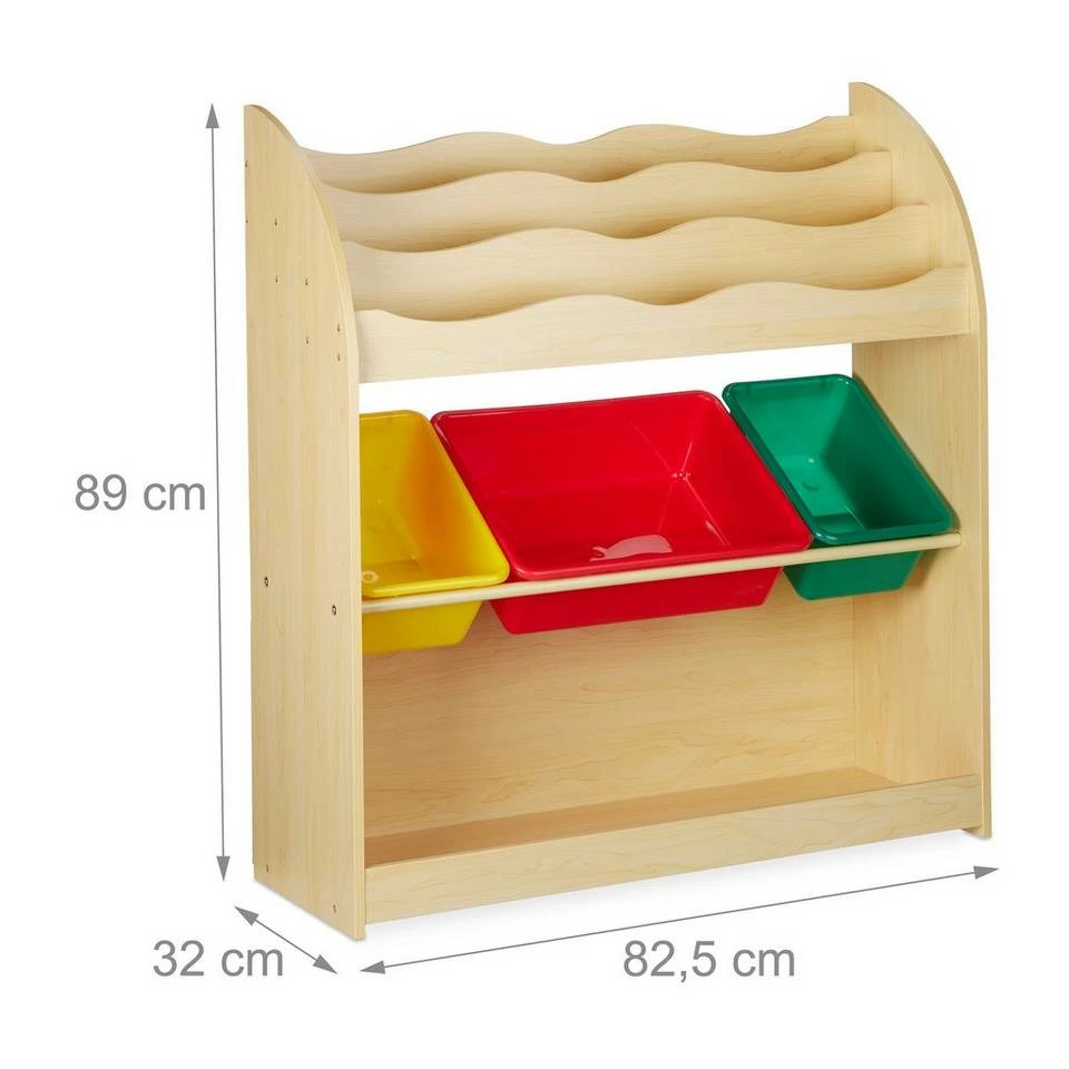 - Aufbewahrung: Niedriges Kinderregal in Holzoptik – Spielzeug Organizer für Ordnung im Kinderzimmer