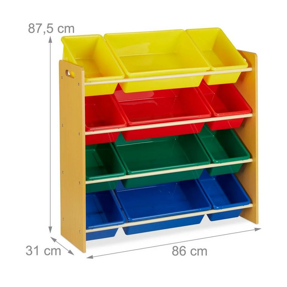 - Stauraum: Kinderzimmerregal mit 12 Aufbewahrungsboxen – Farbenfrohes Design für Jungen und Mädchen