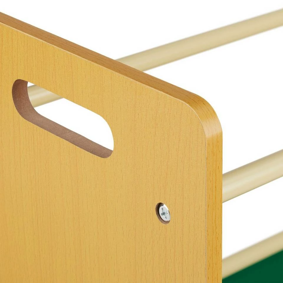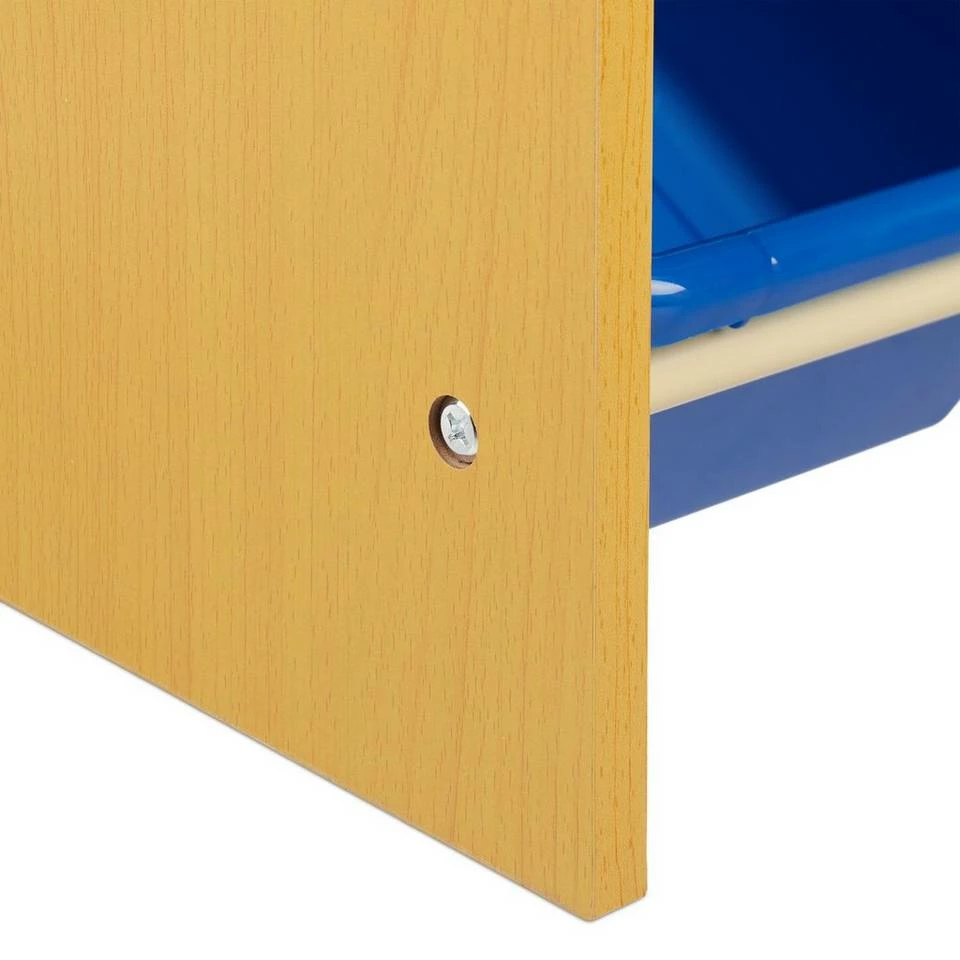 Kinderregal als praktischer Ordnungshelfer Mit Hilfe der bunten Aufbewahrungsboxen im Standregal ist das Spielzeug-Chaos im Kinderzimmer schnell beseitigt. Durch das offene Design lassen sich Bücher, Stifte, Kuscheltiere und andere Spielsachen einfach einsortieren – so macht Aufräumen Spaß. Die schräge Anordnung der Kisten ermöglicht es Ihren Kindern, diese selbst zu entnehmen und eigenständig wieder wegzuräumen. Dank der seitlichen Eingriffe kann das gesamte Regal bei Bedarf schnell und einfach transportiert werden.