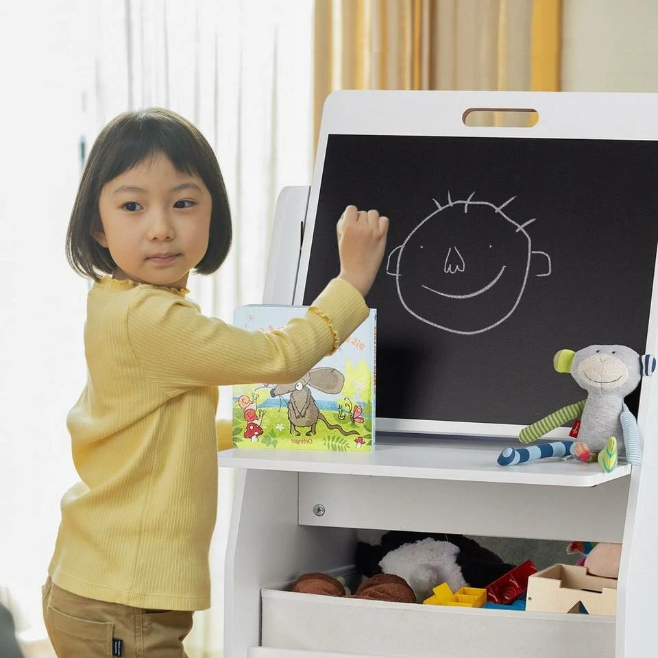 - 3 in 1: Praktische Kombination aus Spielzeugregal, Maltafel und kleinem Tisch für das Kinderzimmer