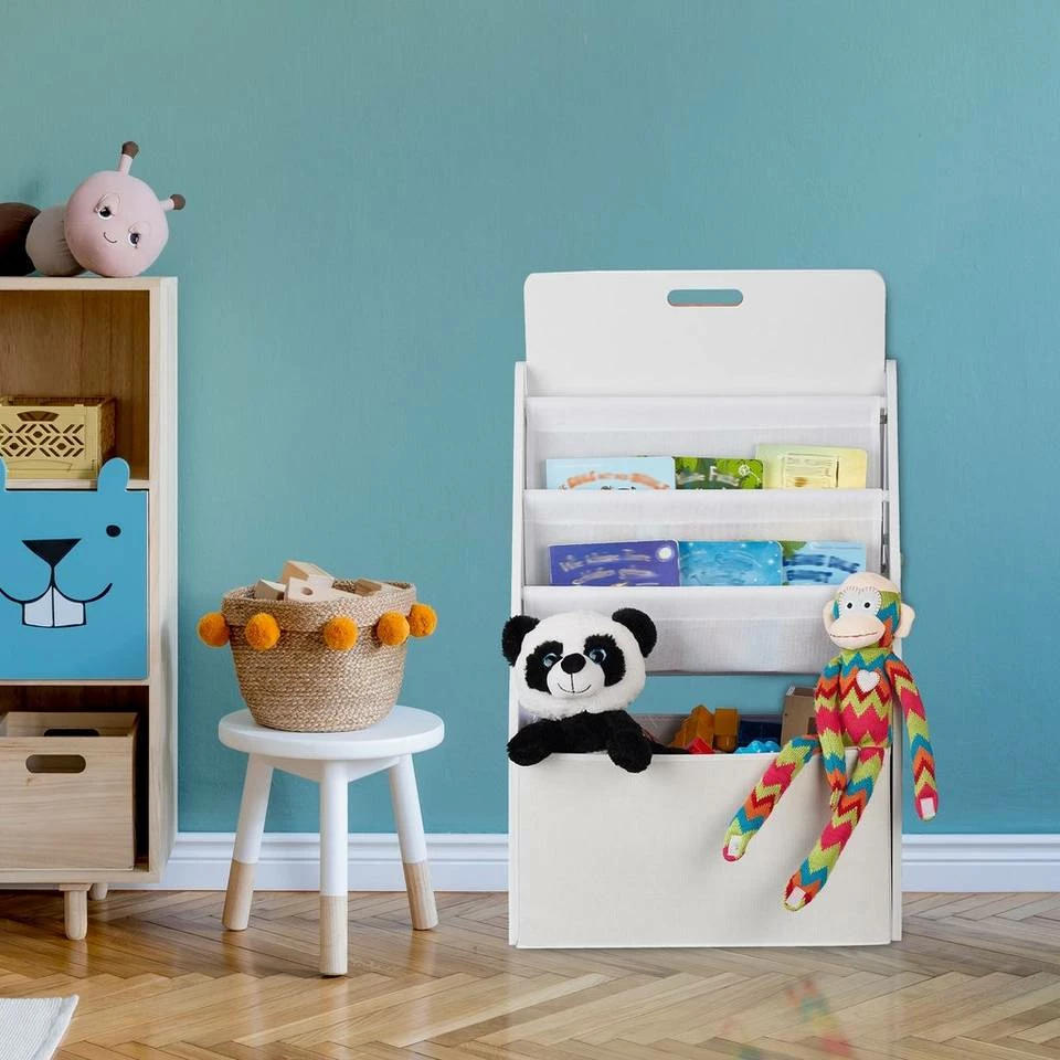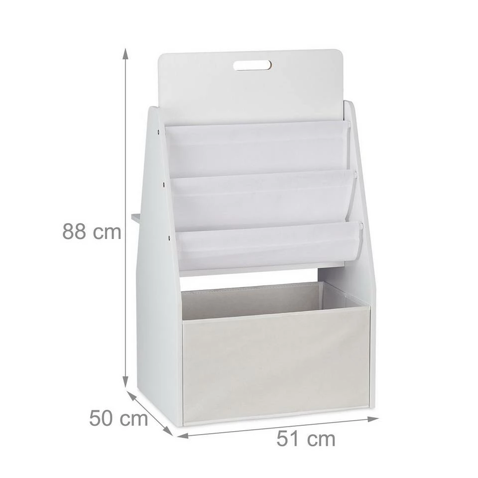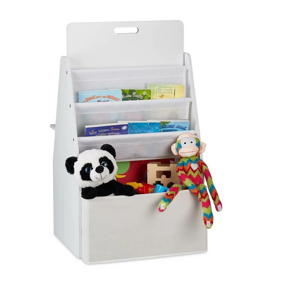 - Aufbewahrung: Kinderzimmerregal mit Aufbewahrungsbox und 2 Stofffächern – Für Spielzeug, Bücher etc.