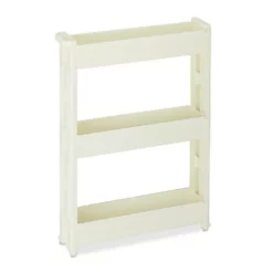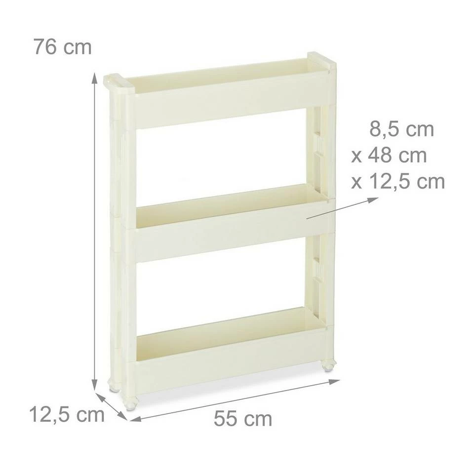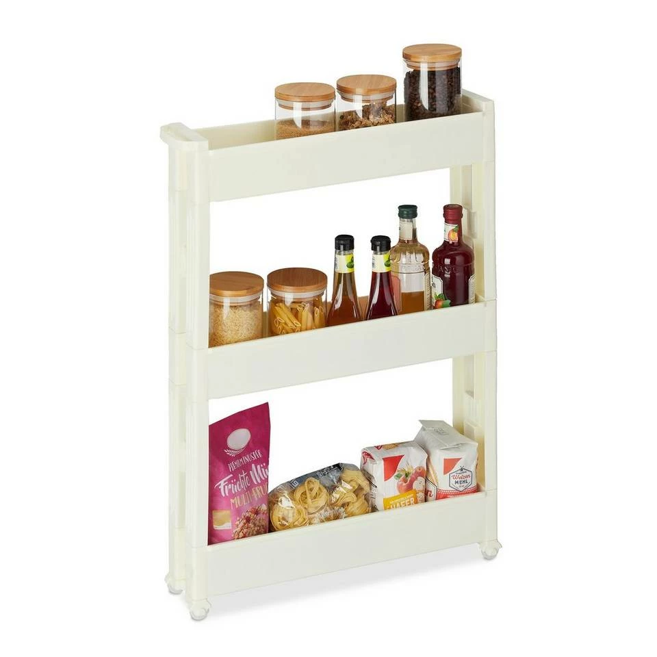 Rollwagen für Zimmernischen Wenn Sie auch den Stauraum in kleinen Nischen bei Ihnen zu Hause noch ausnutzen möchten, ist der Nischenrollwagen ideal. Das schmale Design passt auch in die kleinsten Winkel und birgt auf 3 Ebenen ausreichend Raum zum Aufbewahren. In der Küche macht sich das Rollregal ideal für trockene Vorräte und kleine Küchenutensilien und im Badezimmer finden Badezusätze, Kosmetik und Reinigungsmittel einen angestammten Platz. Dank des Griffs und den 4 Rollen lässt sich das Regal einfach hervorziehen.
