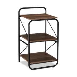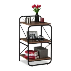 3er Standregal Das Standregal mit 3 Ebenen lässt sich auf vielfältige Weise im Haushalt nutzen. Zusätzlicher Stauraum ist überall praktisch, sei es im Flur, Wohn- oder Schlafzimmer. Bewahren Sie Bücher, DVDs, Fotoalben und Dekoartikel so ordentlich und übersichtlich auf. Das Regal ist nicht nur multifunktional, sondern punktet auch mit seiner Kombination aus schwarzem Metallgestell und dekorativer Holzoptik. Kratzer im Untergrund brauchen Sie dank der Bodenschoner nicht zu befürchten.