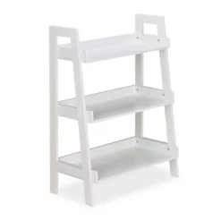 Dekoregal in schlichtem Weiß Dieses schöne Standregal fügt sich mit seinem schlichten und zugleich zeitlosen Design überall gut ein. Nutzen Sie das Regal für Bücher, Pflanzen oder Deko im Wohnzimmer, für Gewürze und Vorräte in der Küche oder für Kosmetik und Handtücher im Badezimmer. Die drei stufenförmig angeordneten Ablagen sind mit einem erhöhten Rand ausgestattet, der verhindert, dass Gegenstände nach hinten oder an den Seiten herunterfallen können. Das Regal muss nicht an der Wand befestigt werden und kann freistehend im Raum platziert werden.