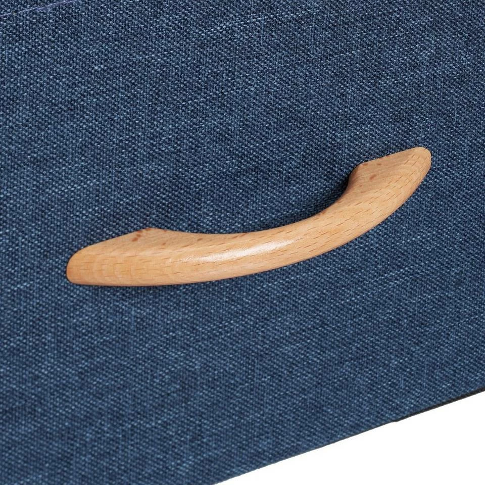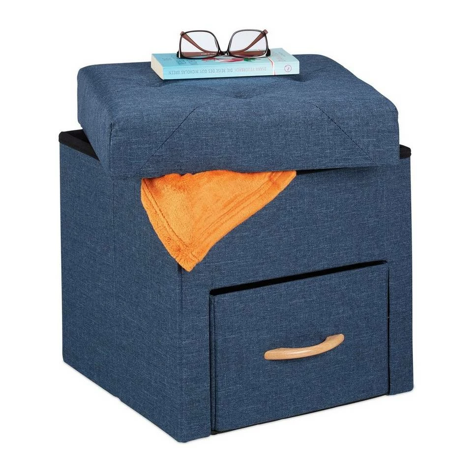 - Design: Dekorativer Stauraumhocker mit blauem Bezug in Leinenoptik und Deckel mit Steppmuster