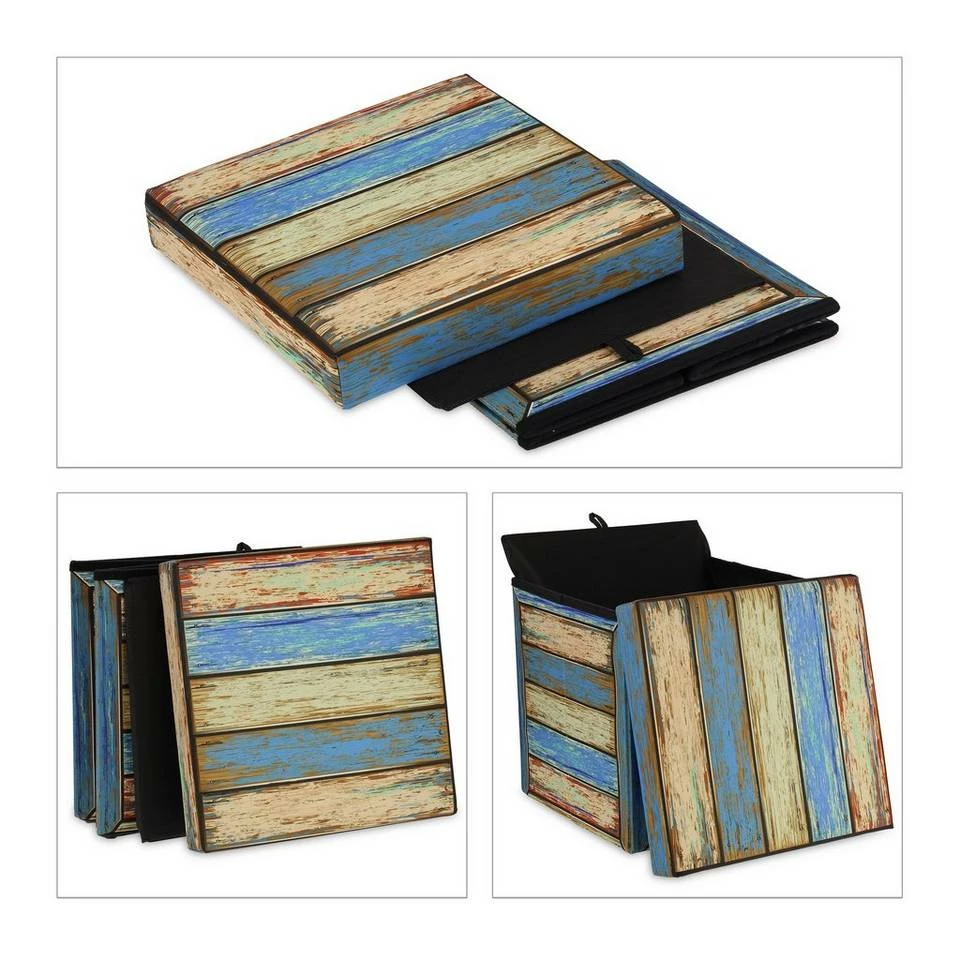 - Design: Vintage Sitzwürfel im farbigen Holzplanken Design – Dekorativer Hocker mit Retro Charme