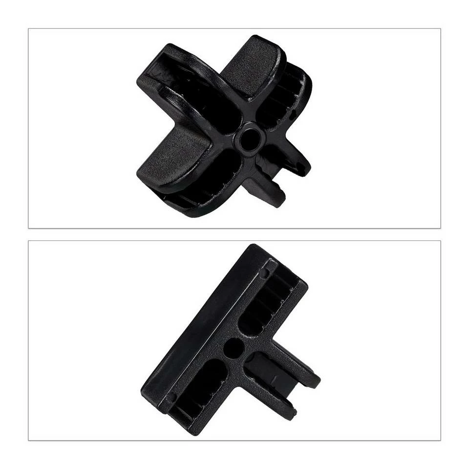 Steckregal Verbindungsstücke in Schwarz Die Regalsysteme von Relaxdays sind die richtige Wahl für Sie, wenn Sie gerne Ihre eigenen Möbel zusammenbauen. Die praktischen Steckregalsysteme sind leicht und lassen sich mit wenigen Handgriffen aufbauen. Dazu sind Steckverbindungen obligatorisch. Dieses 160er Set besteht aus 80 Haupt- und je 40 T- und X-förmigen Plastikverbindungsstücken, mit denen Sie Ihre Steckregale beliebig erweitern können. Das Material der Regalsystem Verbinder ist kratz- und schlagfest und sehr stabil.
