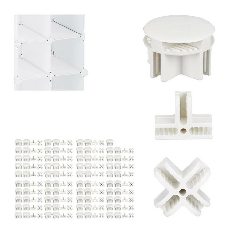 Steckregal Verbindungsstücke in Weiß Die Regalsysteme von Relaxdays sind die richtige Wahl für Sie, wenn Sie gerne Ihre eigenen Möbel zusammenbauen. Die praktischen Steckregalsysteme sind leicht und lassen sich mit wenigen Handgriffen aufbauen. Dazu sind Steckverbindungen obligatorisch. Dieses 160er Set besteht aus 80 Haupt- und je 40 T- und X-förmigen Plastikverbindungsstücken, mit denen Sie Ihre Steckregale beliebig erweitern können. Das Material der Regalsystem Verbinder ist kratz- und schlagfest und sehr stabil.