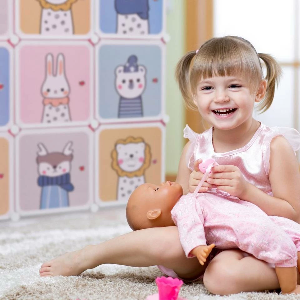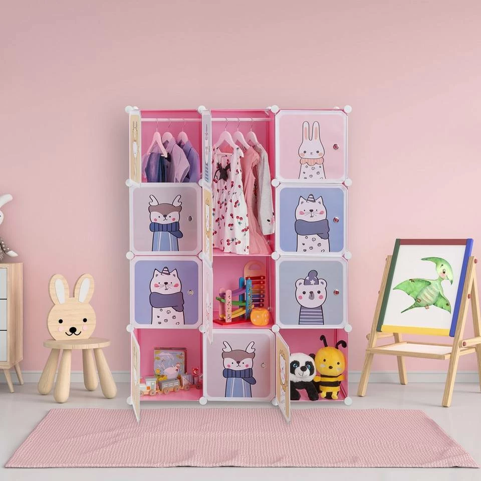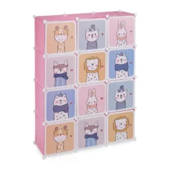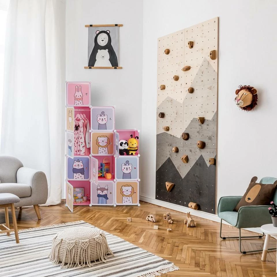 - Für Kinder: Rosafarbenes Steckregal mit Tier-Motiven – Kinderzimmerregal für Mädchen und Jungen