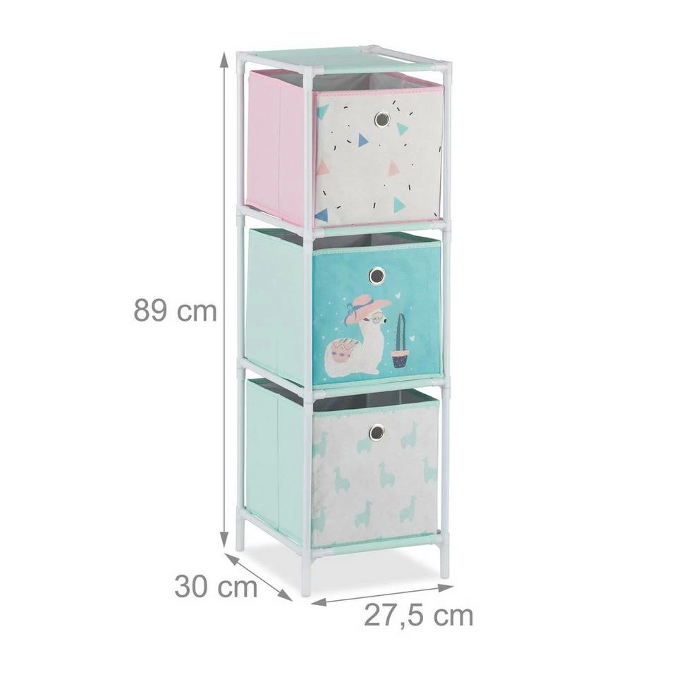- Stauraum: Schönes Standregal mit 3 Stoffboxen – Platz für Spielsachen – HxBxT: ca. 89 x 27,5 x 30 cm