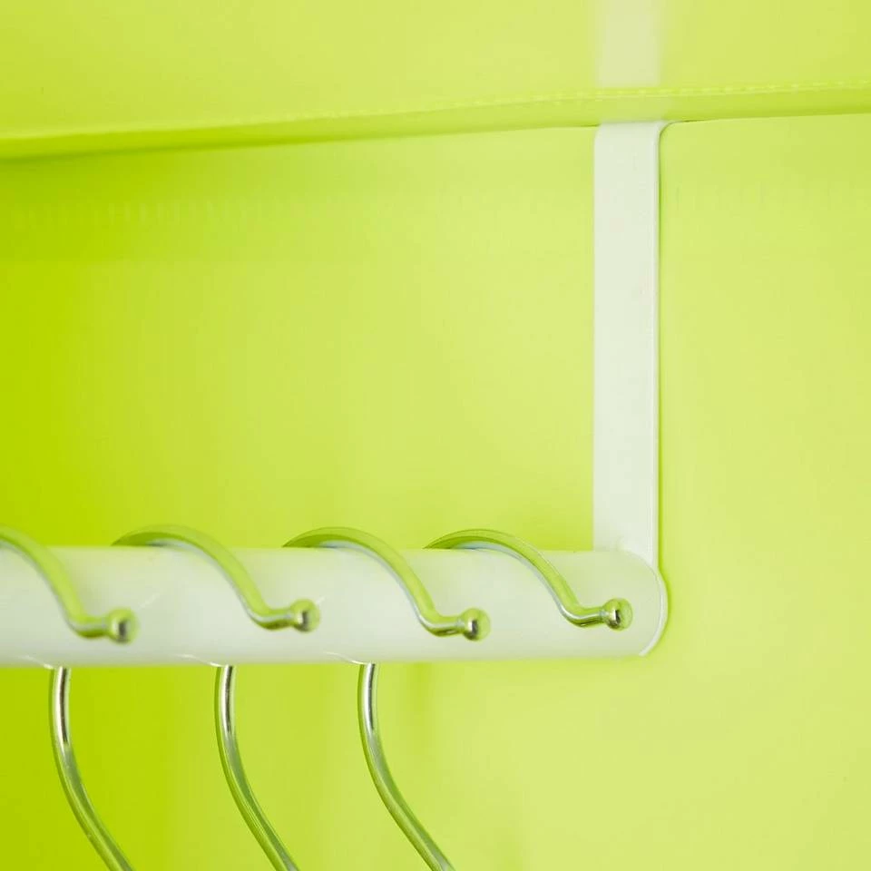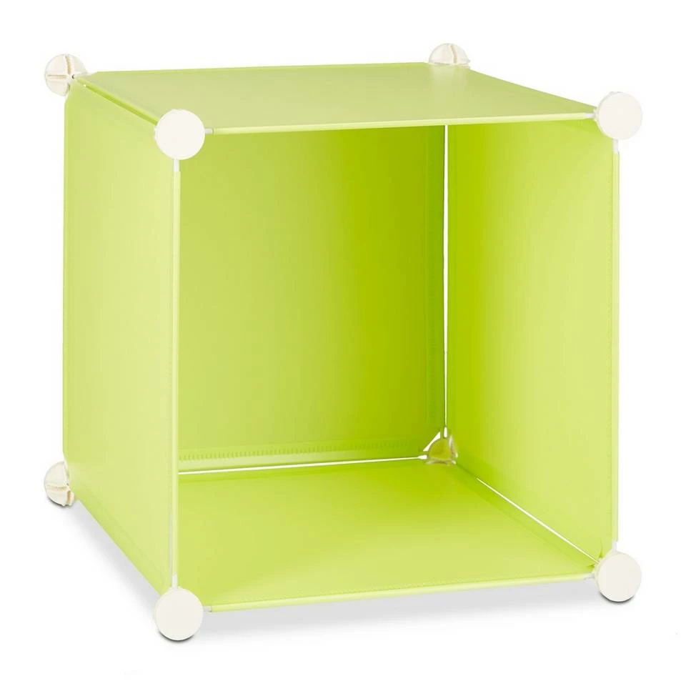 Individuelles Kinderregal Stecksystem Das bunte Regalsystem für das Kinderzimmer ist ideal für kleine Tierfreunde. Der hellgrüne Schrank verfügt über insgesamt acht Türen mit niedlichen Tiermotiven. Hund, Maus, Esel und Tiger bringen Kinderaugen zum Strahlen. Nutzen Sie das Kinderregal mit der Kleiderstange als Kleiderschrank oder basteln Sie mithilfe der flexiblen Steckverbindungen ein schönes Lowboard für Ihr Kind. Ihrer Kreativität sind keine Grenzen gesetzt. Kleidung, Plüschtiere und Spielzeug sind in den großen, quadratischen Fächern gut aufgehoben.