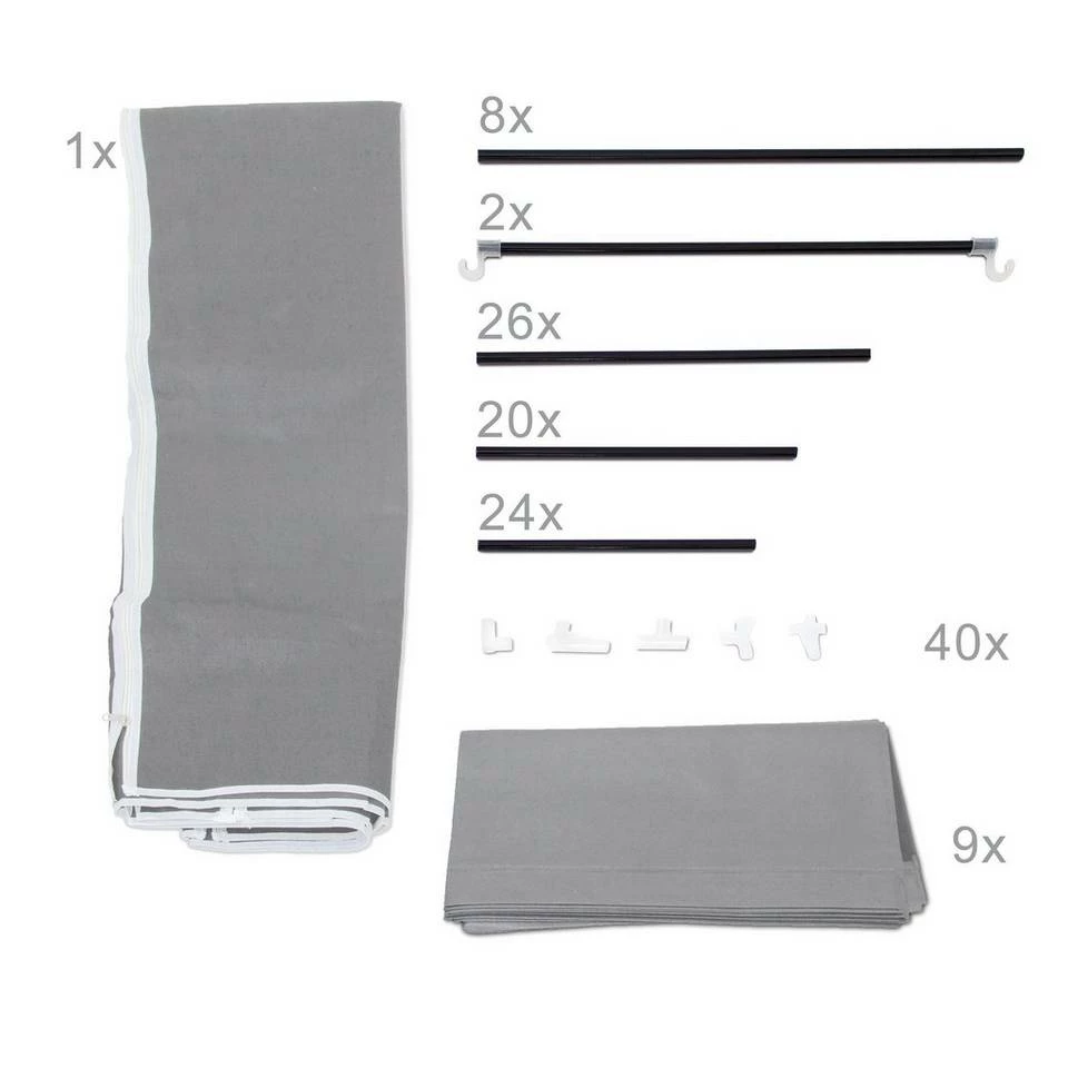 - Stauraum: 1 x Faltschrank in Anthrazit mit Kleiderstangen und 9 Ablagen – Für Kleidung, Decken uvm.