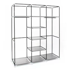 - Stauraum: 3 x Faltschrank Anthrazit mit Kleiderstangen und je 9 Ablagen – Für Kleidung, Decken uvm.