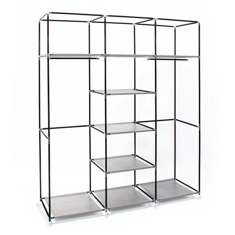 Stabiler Stoffkleiderschrank mit Kleiderstangen Egal, ob Sie Saisontextilien staubfrei lagern oder Ihre Campingausrüstung sicher verwahren wollen – der mobile Stoffschrank in XXL erfüllt alle Wünsche. Mit 9 Ablagen & 2 Kleiderstangen bietet der Faltschrank viel Stauraum für Kleidung, Schuhe & mehr. Der leichte Kleiderschrank aus Stoff ist schnell auf- & abgebaut & eignet sich wunderbar als Reiseschrank beim Camping. Nutzen Sie die Faltgarderobe als Kellerschrank, bleiben Ihre Sachen dank der Reißverschlüsse staubfrei & doch immer zugänglich.