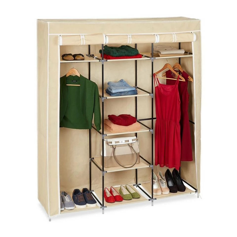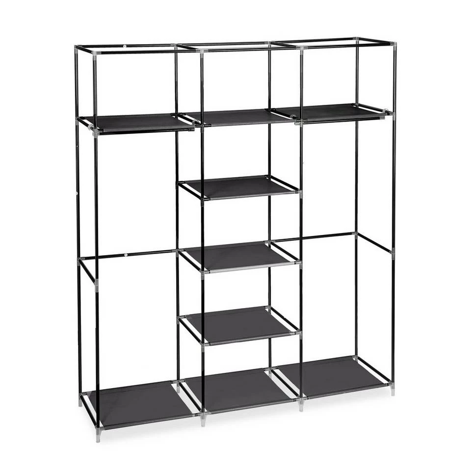 - Praktisch: Kleiderschrank mit 9 Böden – 2 Kleiderstangen – Aufrollbarer Überzug mit Reißverschluss