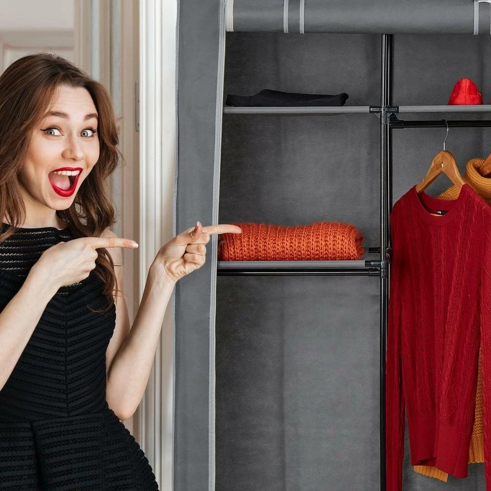 - Organizer: Grauer Stoffschrank mit Bezug inkl. Reißverschluss – Einfacher Aufbau dank Stecksystem