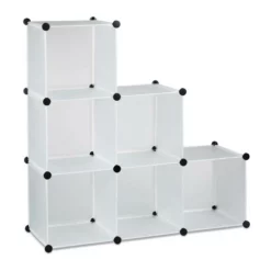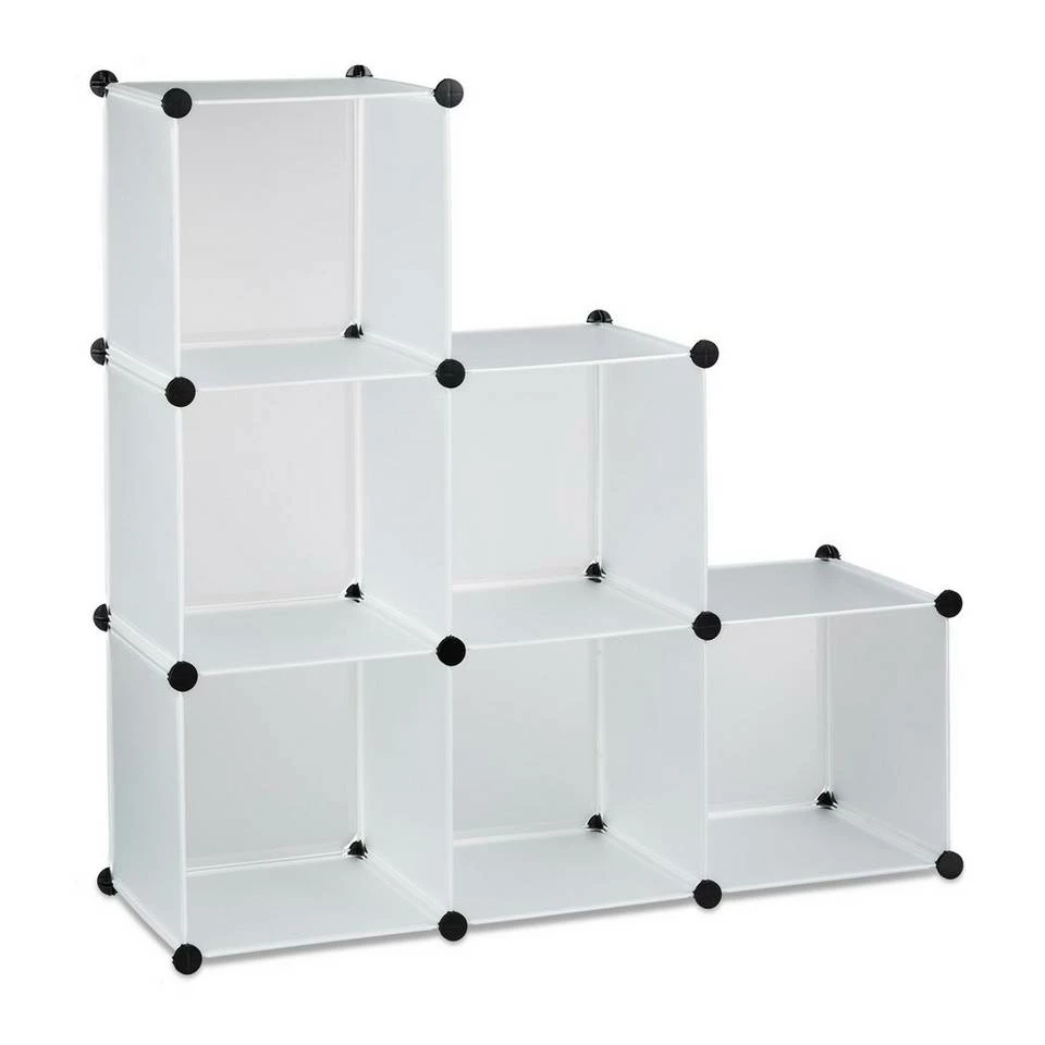Stufenregal 6 Fächer als Raumteiler Dieses Steckregal ist ein echtes Aufbewahrungswunder. Als Kleiderschrank lagern Sie Schuhe, Kleidung oder auch Decken ordentlich und sortiert. Ebenso lässt es sich als Raumteiler verwenden, um offene Wohnbereiche optisch abzugrenzen. Dazu können Sie das Standregal in den verschiedensten Formen aufbauen und Ihrer individuellen Wohnsituation anpassen. Mittels einfachem Stecksystem bauen Sie das Regal ohne Bohren und Schrauben im Handumdrehen auf.