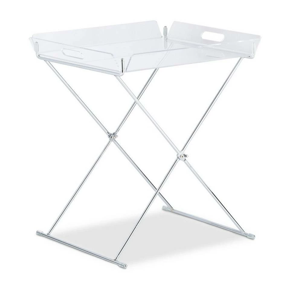 - Design: Eleganter Look durch die Kombination aus Gestell in Chrom-Optik und transparentem Tablett