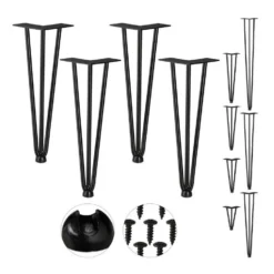 Hairpin Tischbeine für DIY-Begeisterte Die Haarnadelbeine im 4er Set sind genau das richtige für kreative Heimwerker, die ihre eigenen Möbel bauen oder ihrer bisherigen Einrichtung einen neuen Anstrich verleihen wollen. Ob Beistelltisch & Kommode, Couchtisch, Schreib- oder Esstisch – mit den schwarzen Metallbeinen peppen Sie jedes Möbelstück auf & holen sich den angesagten Mid-Century-Stil in Ihre 4 Wände. Angelehnt an das klassische Hairpin-Design aus den 1940er Jahren setzen Sie mit den Tischfüßen garantiert dekorative Akzente.