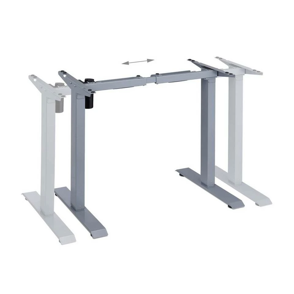Elektrisches Gestell für Schreibtische Mit dem robusten Tischgestell haben Sie die Grundlage für einen ergonomischen individuellen Arbeitsplatz. Stellen Sie die Breite auf die von Ihnen ausgewählte Tischplatte ein. Anhand der zwei Schalter stellen Sie den fertigen Schreibtisch dann stufenlos in der Höhe ein. So können Sie abwechselnd im Sitzen oder Stehen arbeiten und beugen damit Nacken- und Rückenschmerzen vor. Mit der schlichten Farbe passt das Stehschreibtischgestell in jedes Büro oder Arbeitszimmer.