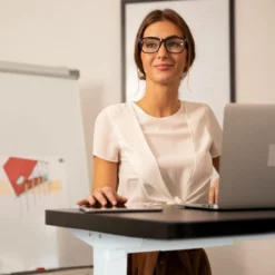 - Individuell: Moderner Steharbeitsplatz für Tischplatten mit ca. 100-160 cm Breite und 50-80 cm Tiefe