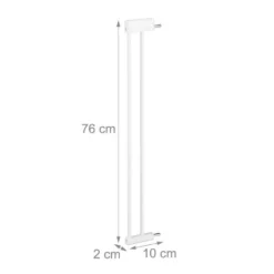 Individuelle Breite mit der Türgitter Erweiterung Die Gitter Verlängerung passt für Schutzgitter mit 76 cm Höhe und Seitenlöchern mit einem Durchmesser von 1 cm. Einfach eingesteckt, kann das Gitter wie gewohnt in Türrahmen oder zwischen Wänden eingespannt werden. Mit einer Auswahl von 4 verschiedenen Größen, können Sie eine individuelle Breite finden, die für Ihre Tür oder Treppe passend ist. So können auch breitere Durchgänge gesichert werden – ein nützliches Helferlein für Haushalte mit Babys oder Hunden.