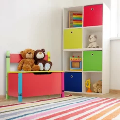 Sitztruhe mit Stauraum für Kinder Diese niedliche Kinderbank ist eine tolle Sitzgelegenheit fürs Kinderzimmer. Nach ausgiebigem Toben können sich Deine Kleinen auf der Sitztruhe ausruhen. Die entstandene Unordnung ist dank der Spielzeugtruhe ebenso im Nu aufgeräumt. Kuscheltiere, Spielzeug, Bücher und mehr finden im geräumigen Fach der Truhenbank Platz und können mit dem Deckel blickdicht verstaut werden. Die robuste Kindersitzbank überzeugt dabei mit ihrem farbenfrohen Wachsmalstift Design, das Kinderaugen zum Strahlen bringt.